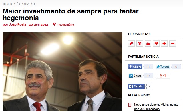 Quanto a Caballero, cuja contratação/gestão já aqui mereceu muitas críticas, segundo o Record vai ser emprestado ao Aves, equipa com um projecto de subida de divisão. O mesmo jornal diz que Gonçalo Paciência pode seguir o mesmo caminho, informação totalmente falsa - e ainda bem.