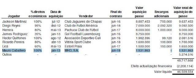Assim sendo, e repetindo, se a FIFA diz que o Caballero era um jogador livre, por que é que se pagou 1,53M€ por ele a uma empresa da qual nada se sabe? Faz lembrar o caso de Kayembé, que tinha acabado contrato com o Standard Liège e cujo custo já vai em 3,165M€. Demagogia, dirão alguns, mas estes 4,7M€ pagos por dois miúdos que estavam livres já davam para comprar um central jeitosito...